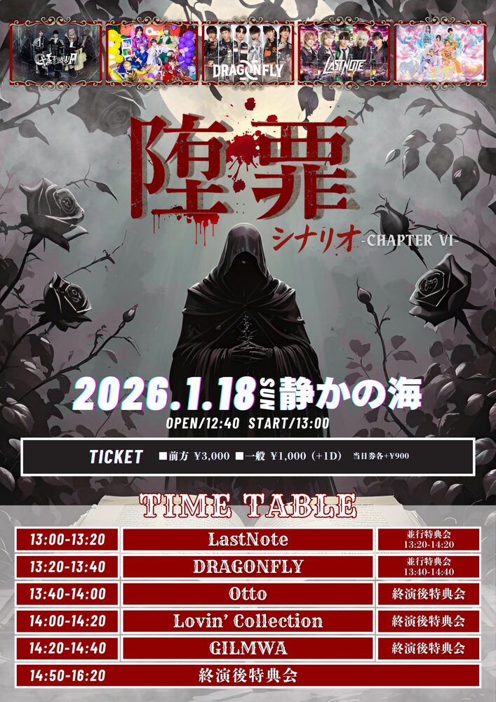 ■急遽出演メンバーが変更になる場合がございます。その際基本的にはチケットの払い戻しはおこないませんので予めご了承ください。
