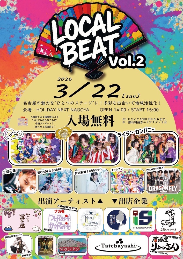 2026年3月22日(日)HOLIDAY NEXT NAGOYAでおこなわれる『LOCAL BEAT vol.2』にDRAGONFLYが出演させていただきます!